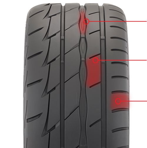 The new tread design, featuring a proprietary Pulse Groove water channel, gives improved handling and braking on wet roads (as compared to the Firehawk Wide Oval Indy 500® tire). And the new outer tread design lets you take corners with more confidence.