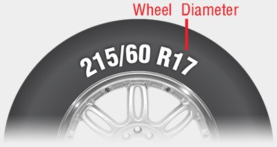 Tires come in a variety of diameters, ranging from 13" to 22". To find your vehicle's wheel diameter or size, check the vehicle's tire information placard on the inside of the driver's side door. You can also find your tire size by checking the sidewalls of your current tires, where you'll see a series of numbers and symbols similar to: P215/65 R15. The wheel diameter will be the last number in the series. In this example, the vehicle's wheel diameter is 15".